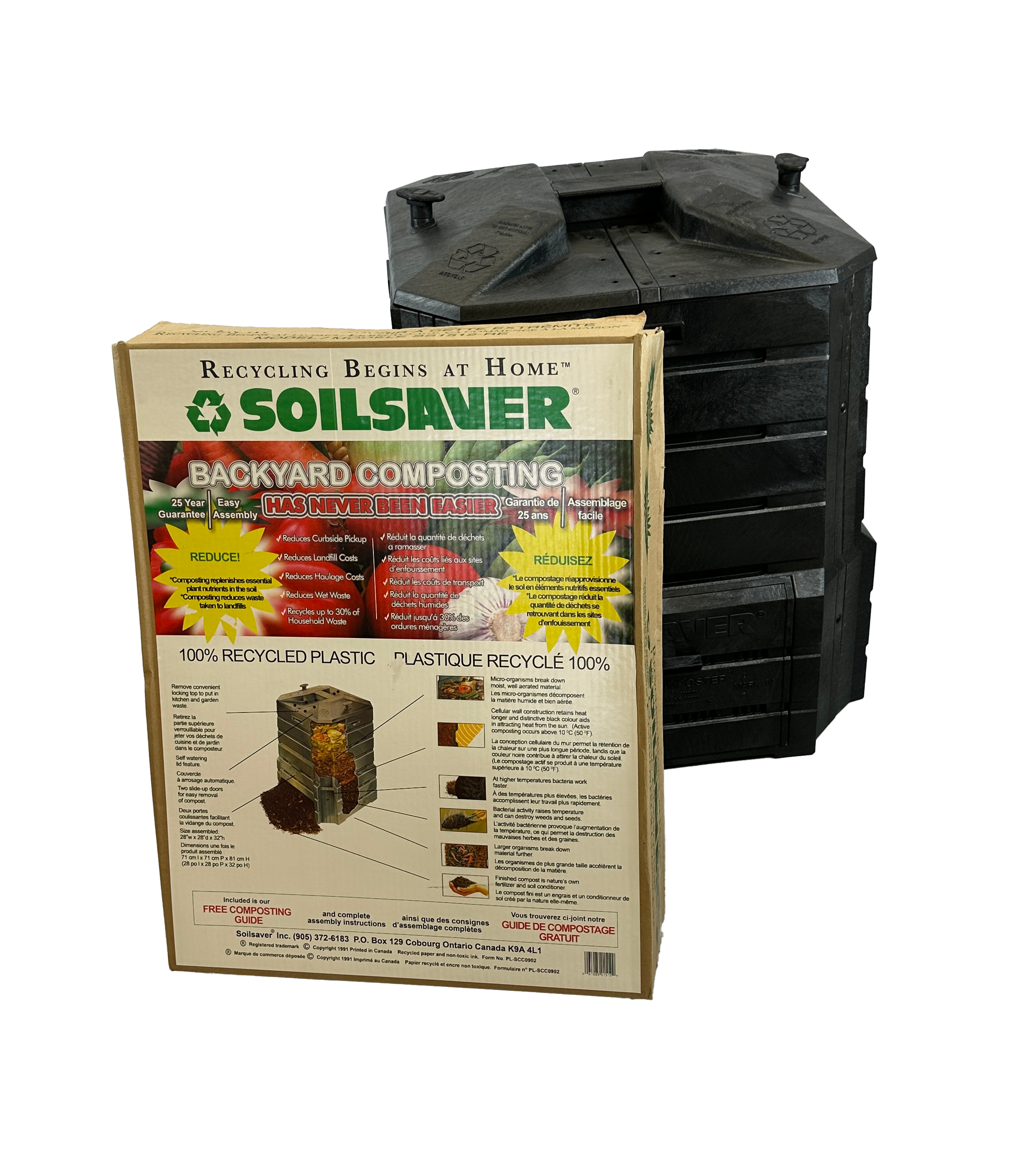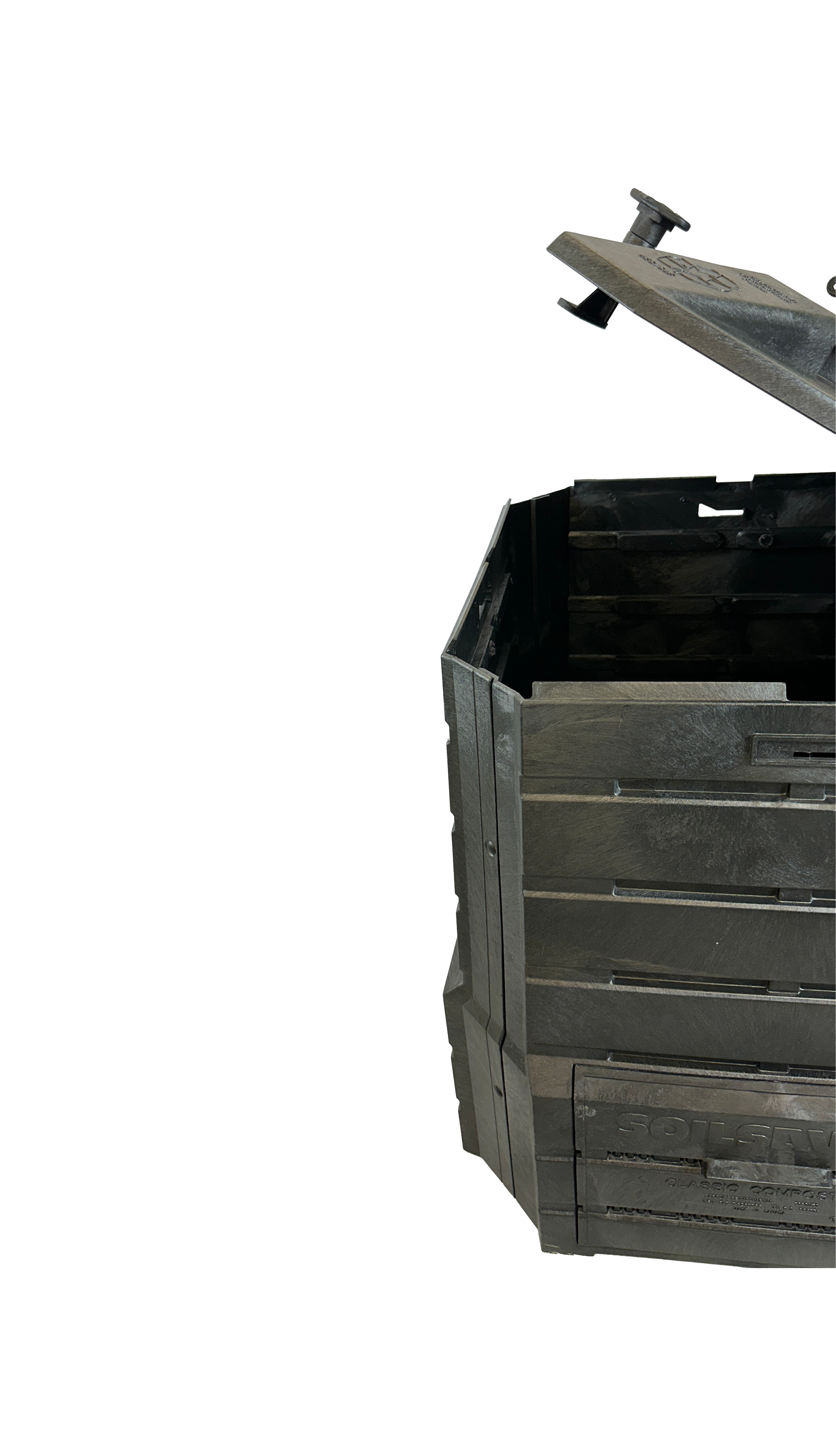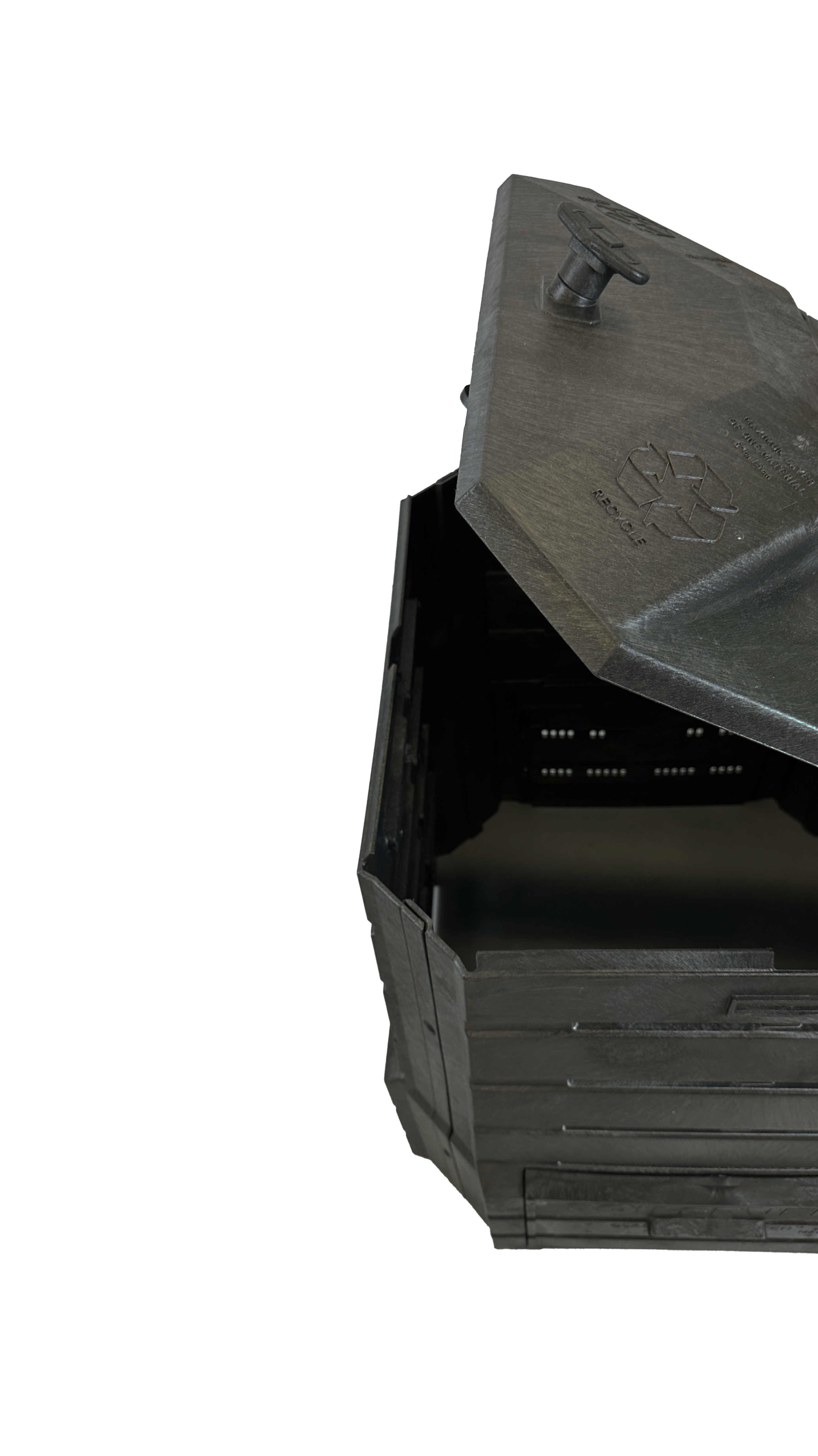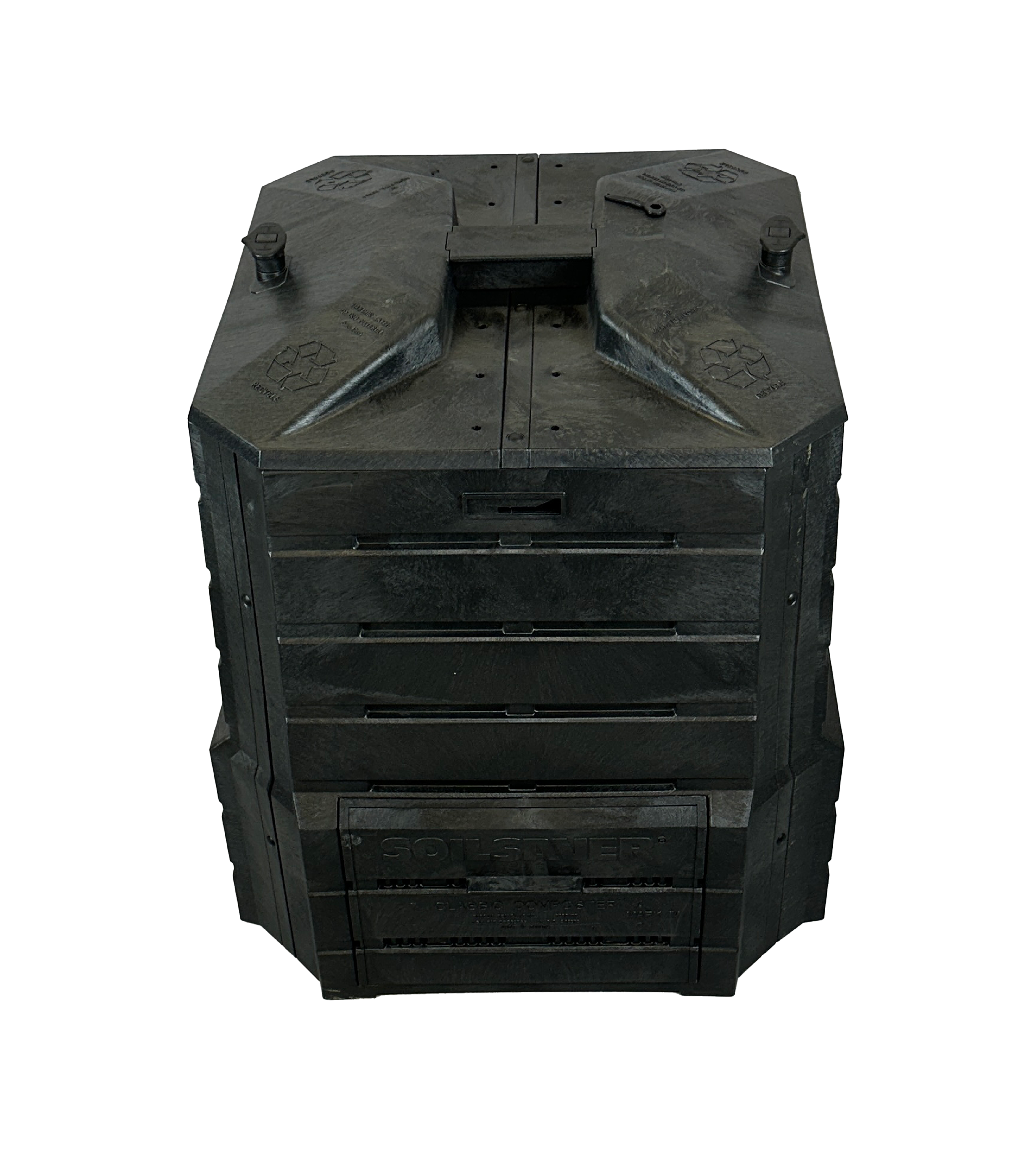 Ce produit d'occasion est en excellent état et prêt à l'emploi. Sa structure en plastique 100% recyclé assure une durabilité optimale. Sa conception avec portes coulissantes permet une extraction facile du compost. Ce produit est également muni d'un couvercle à enclenche, facile à ouvrir pour l'insertion des résidus.